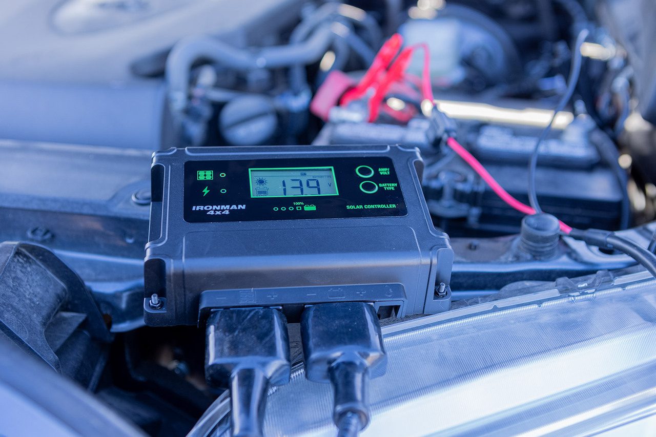 The Ironman 4×4 regulator is designed to charge a range of battery types, with a backlit LCD display providing power input and battery charge levels.