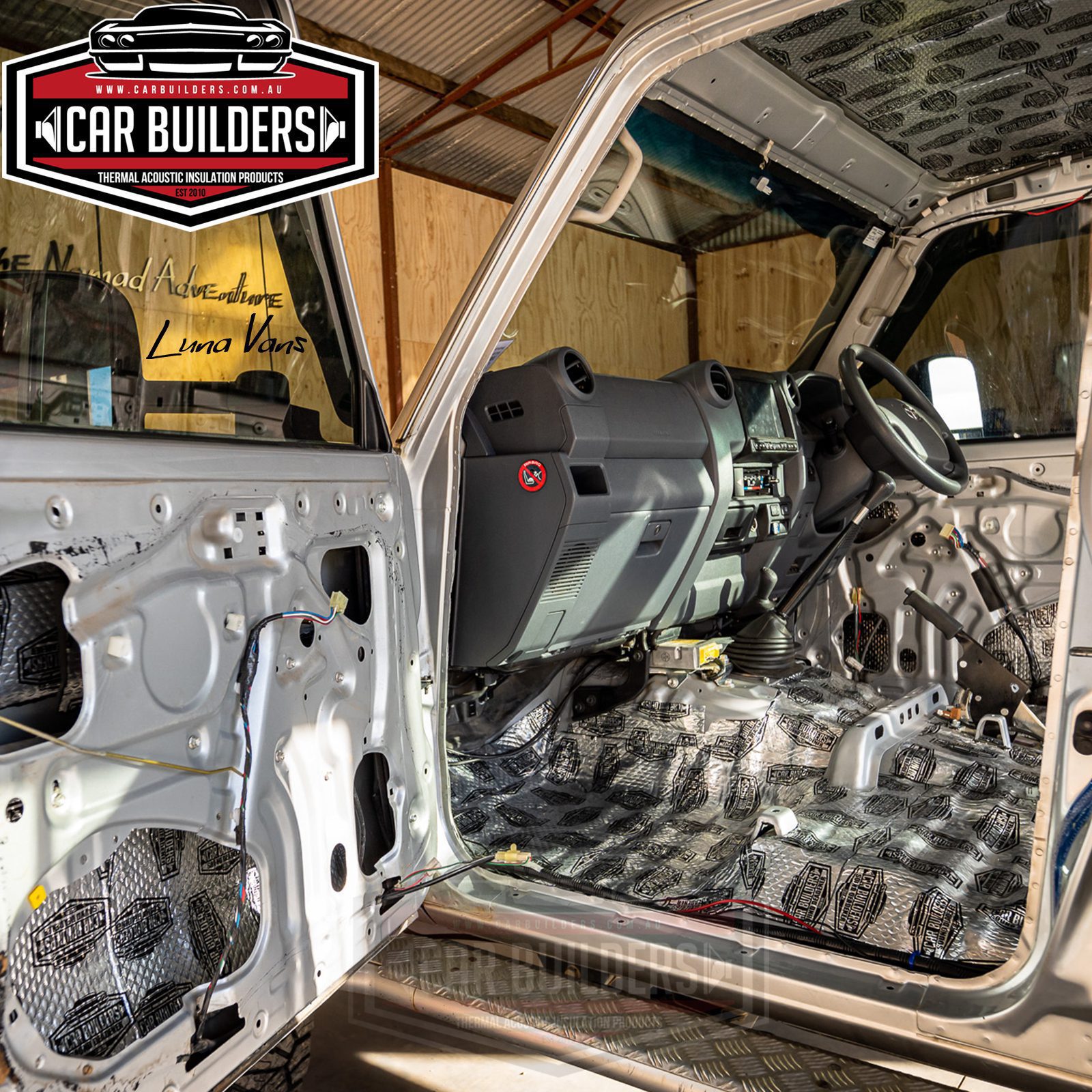 Car Builders Stage 1 Sound Deadener is a vibration (sound) dampening mat. It consists of a butyl rubber noise absorption layer combined with an aluminium top layer.