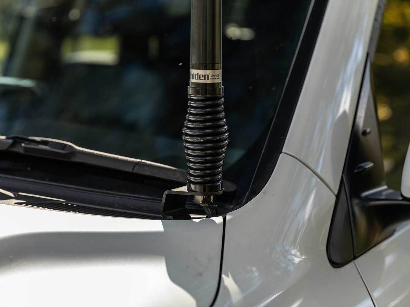- Mounts your antenna or aerial directly under the bonnet hinge on the Passenger side (RHD / Australian Vehicles).