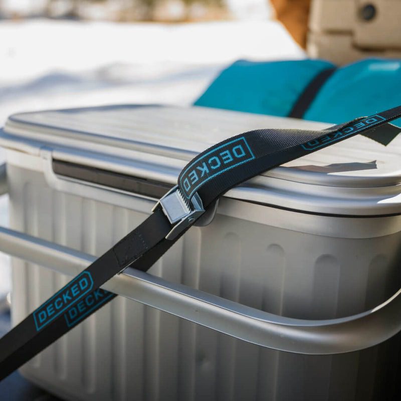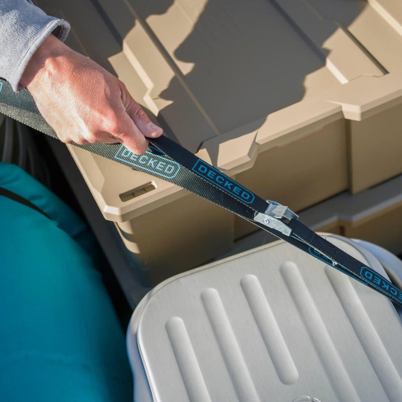 Don’t let your precious gear fly away. Strap it down with the DECKED Cam Straps. These quick-access straps hold items like coolers, tool boxes, and lumber in place. They strap directly through the D-Rings on DECKED Drawer Systems, and come in a set of two.
