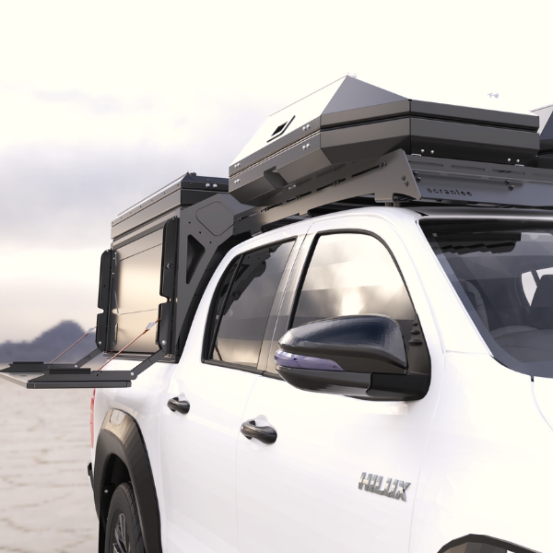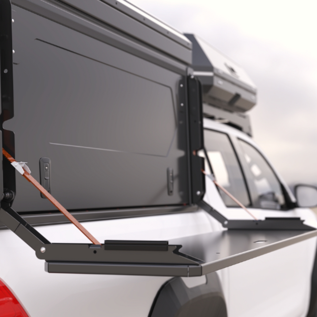 Designed to mount onto any Canopy Camper or ModCAP, it stays clear of the side door and can still be opened or accessed with the table in place.