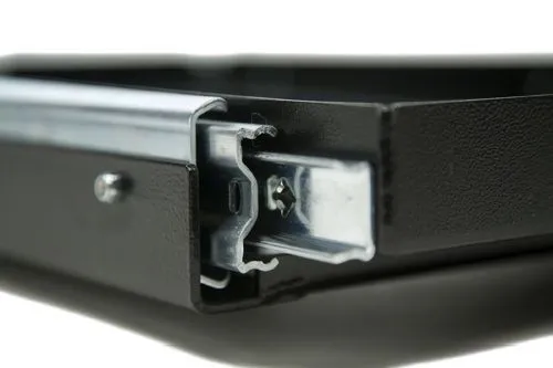 - High strength bearing drawer slides allows the tray to extend nearly 100% from the anchored base.