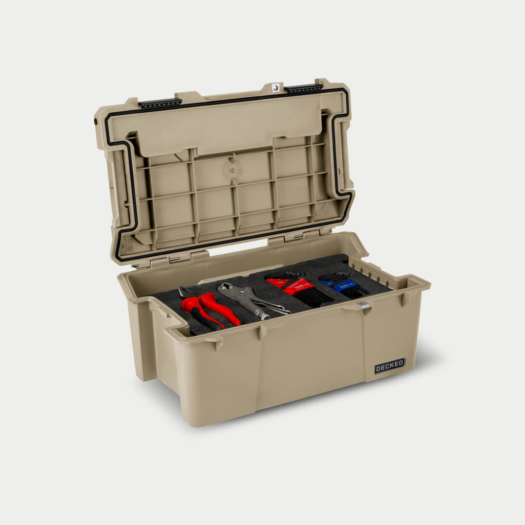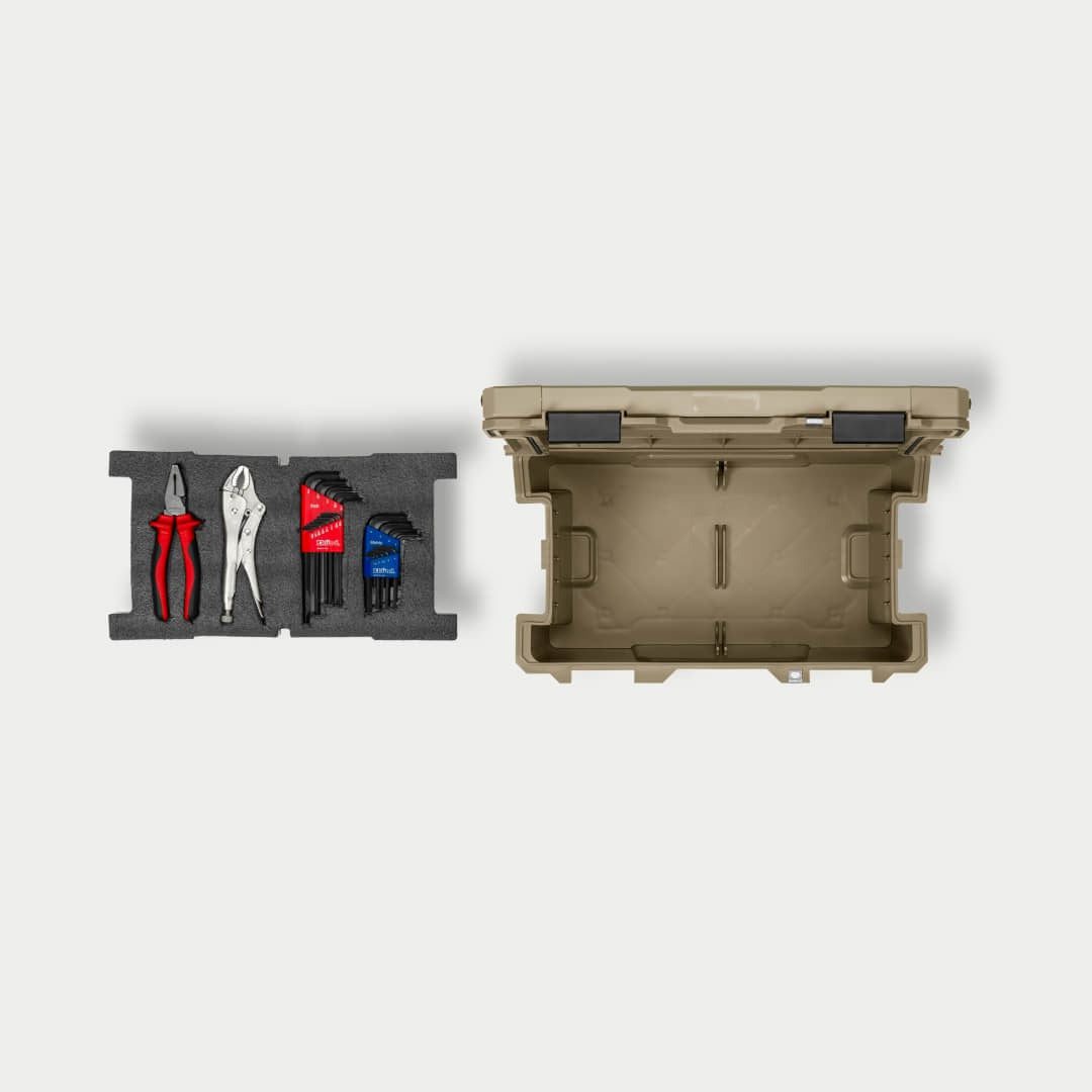 The DECKED Custom Foam inserts for the Sixer enable complete customization for your tools and gear. Made from multilayer polyethylene foam, this Kaizen foam is built like a layer cake, allowing you to trace, cut, and remove foam to your desired depth. The result is a perfect fit for whatever you are fitting in there, nestled securely inside your D-co Case.