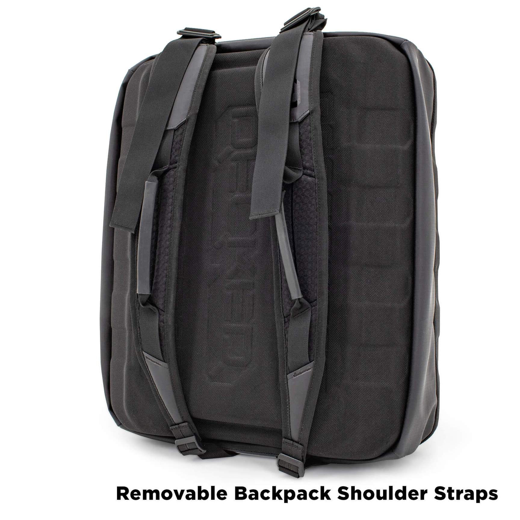 - Removable Duffel Bag (900D TPU coated nylon with thermoformed EVA foam base) with heavy duty ring snaps that secure it inside the main bag