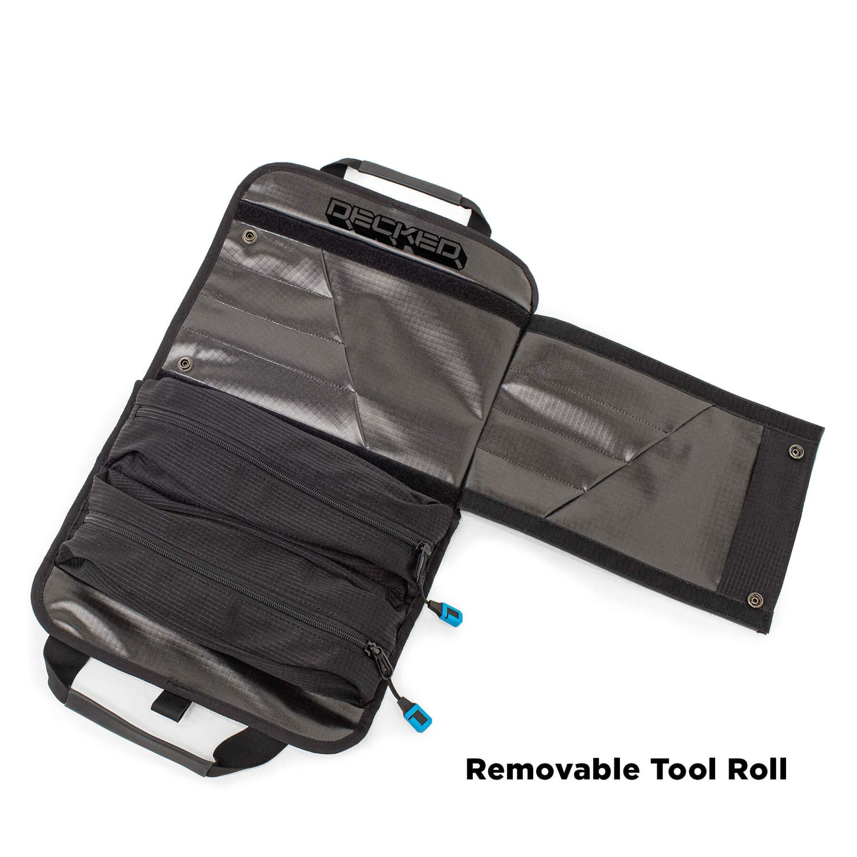 - Removable Tool Roll (900D TPU coated nylon) with heavy duty ring snaps that secure it inside the main bag. Semi-transparent pockets to see contents