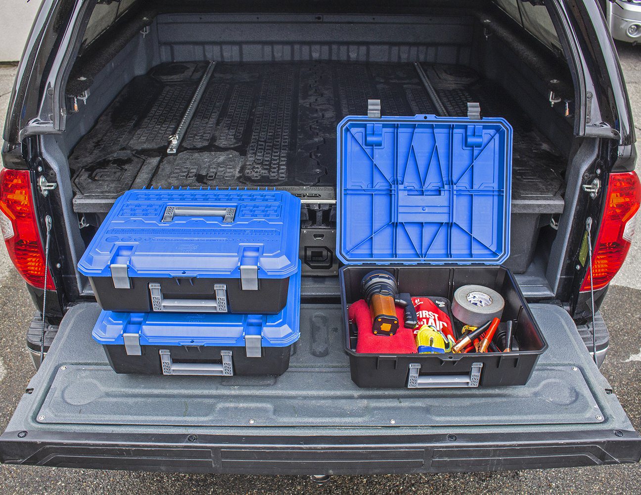 The DECKED D-Box (toolbox) maximizes drawer storage efficiency and organization, nesting within the DECKED drawers and Tool Box.