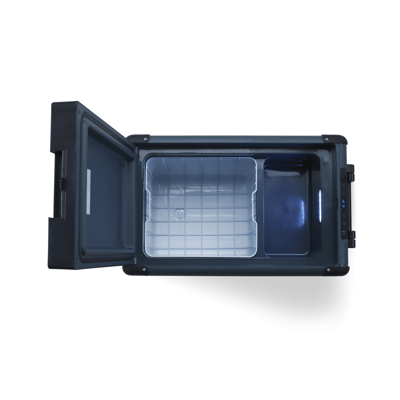 This reliable powered cooler allows you to bring more of the food and drink you love, wherever you go. Its robust design is built for tough outdoor use. Featuring a smartphone app to control the interior temperature, ergonomic foldable handles for carrying, and a digital display, this medium powered cooler is perfect for your next weekend adventure.