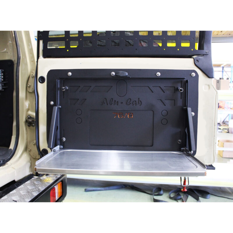 Quickly get more table space, for food prep or work, from the back of your vehicle. This sturdy drop down table mounts to the rear swing door of Jeep JK/JKU/JLs and other vehicles and trailers with a suitable flat mounting surface. Includes a black powder coated steel table top with an extendable wooden tray. Designed to be easily accessed. Securely stow away for rattle-free adventure.