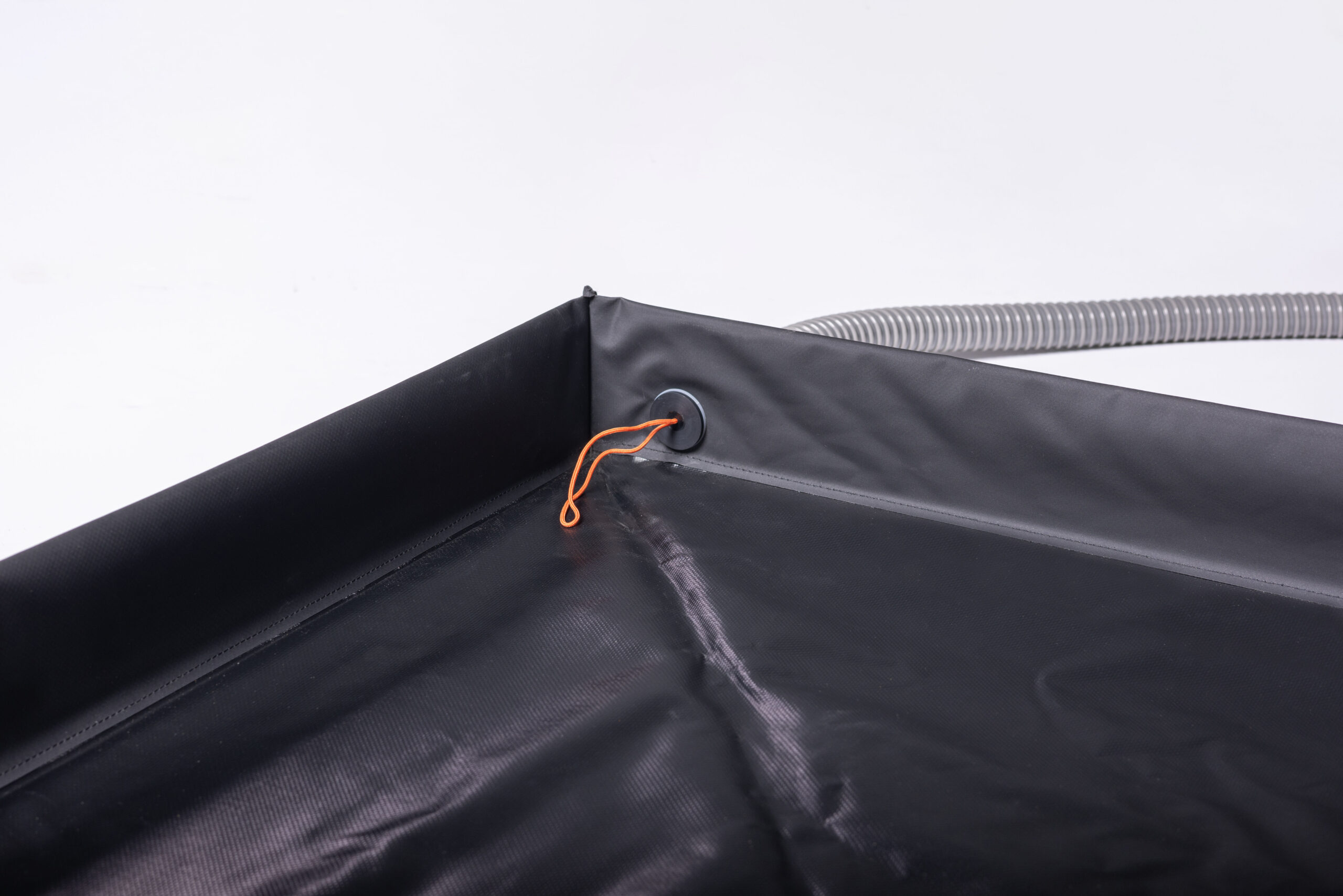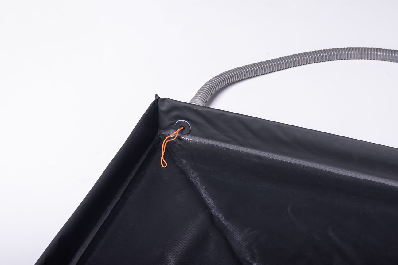 Keep your feet clean and mud away with the optional Ensuite Tub Base, with built-in water hose and bung plug.