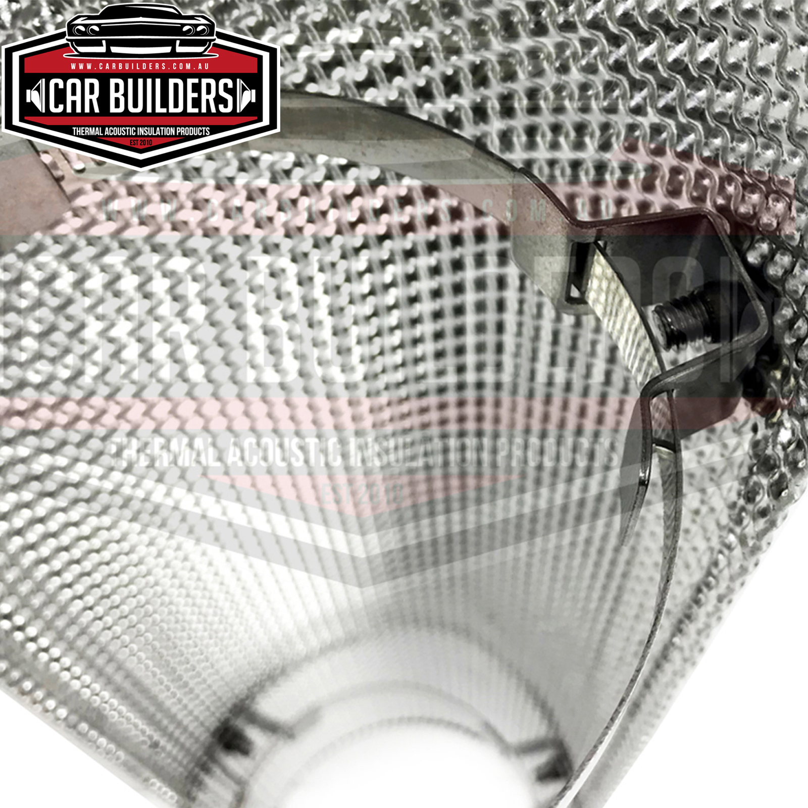 Car Builders multi-layer Exhaust Heat Shields are semi rigid and come pre-formed, complete with stainless mounting brackets, bolts and hose clamps, ready to fit to your exhaust pipe.