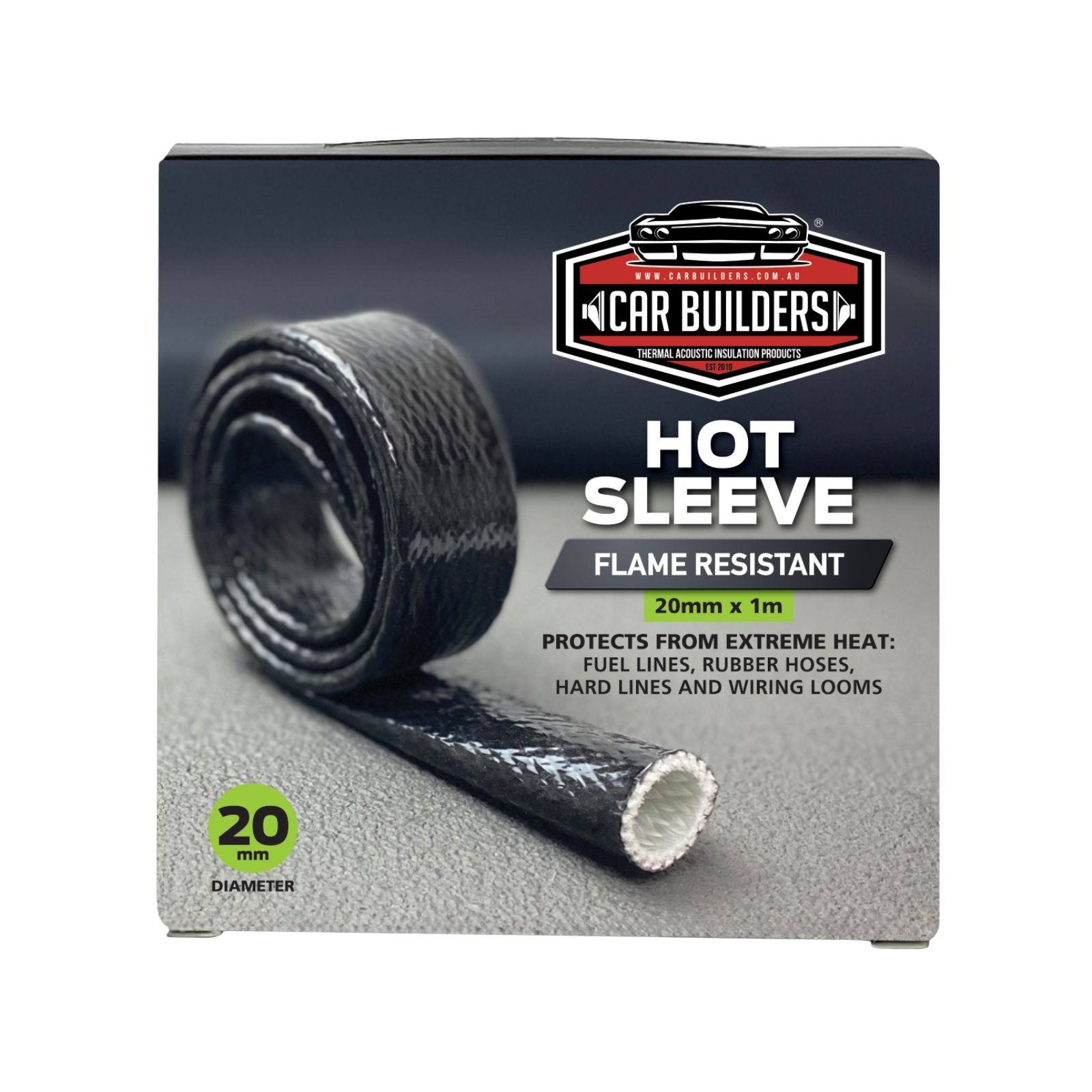 Hot Sleeve Flame Resistant Sleeve is capable of withstanding constant heat of 260°C, ideal for those compromised locations when running fuel lines, rubber hoses and even hard lines.