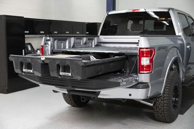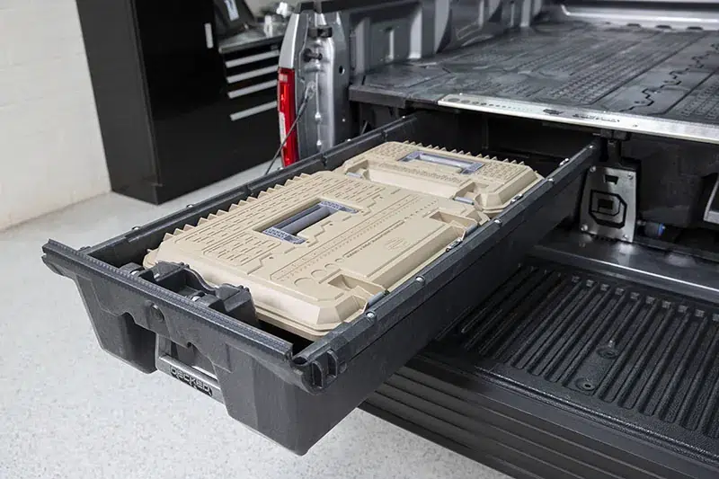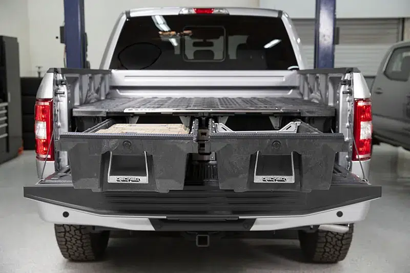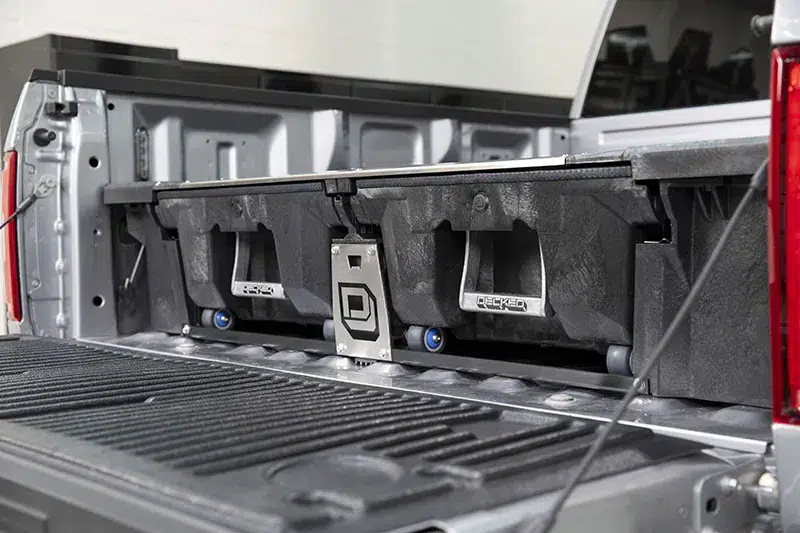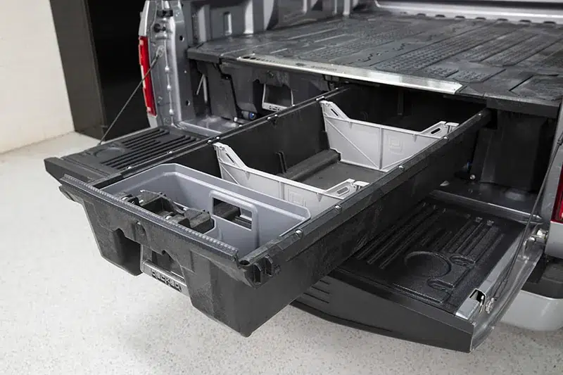 DECKED storage drawers provide the ultimate access and organization for your tools and gear. Get a DECKED system today for your Ford Truck.