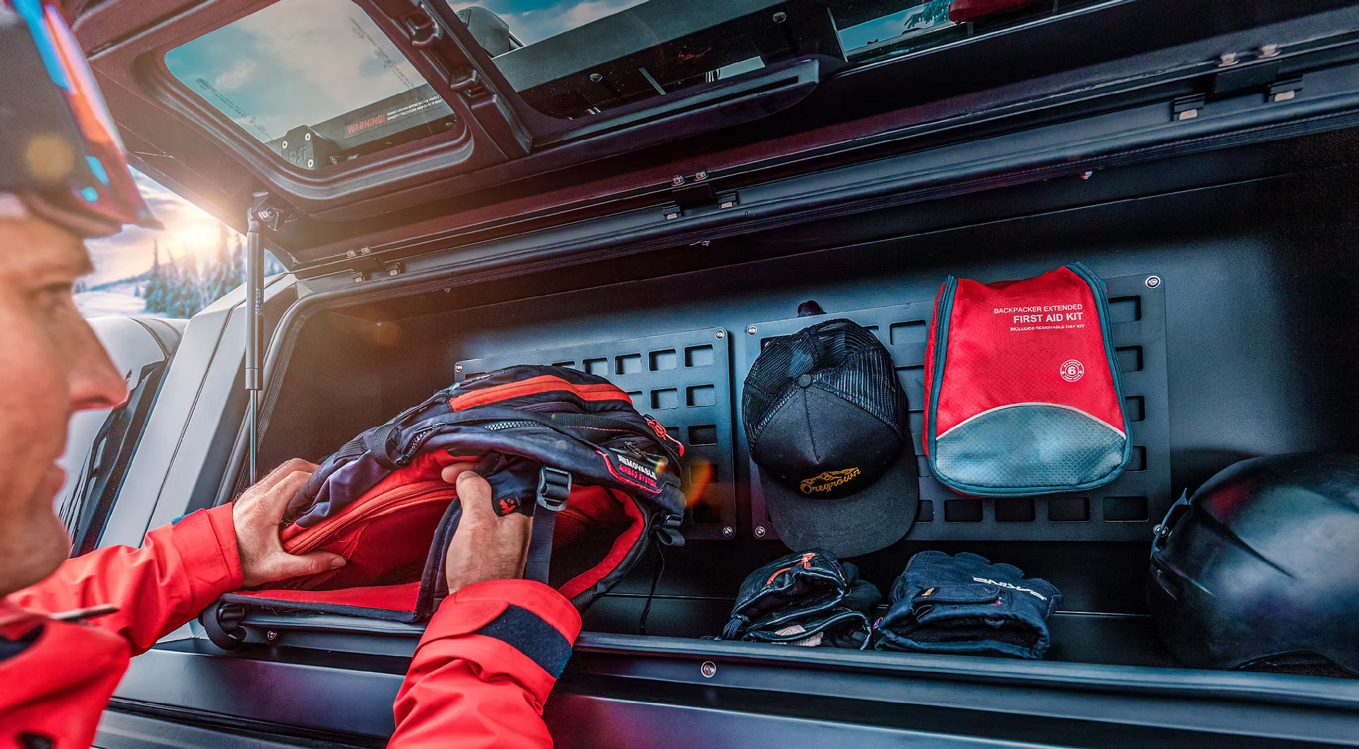 Fills the entire side opening and provides Molle Panels to secure cargo.