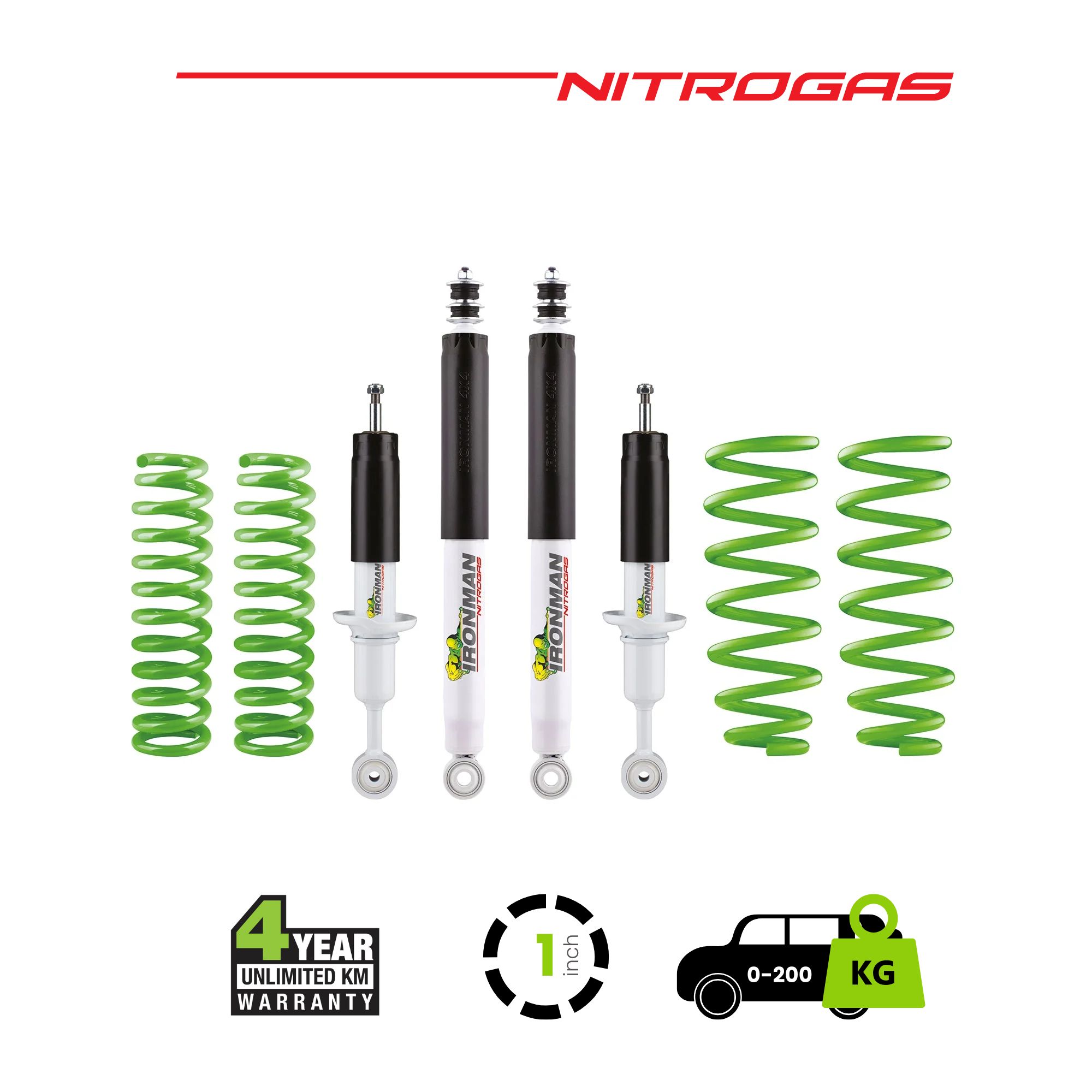 Ironman 4×4 35mm bore Nitro Gas Shocks are the rugged all round 4×4 performance shock absorber. Ironman 4x4Nitro Gas Shocks provide exceptional performance for both standard and raised height 4×4’s whilst delivering superior ride control and comfort both on and off road. Improve stability when towing or carrying a load. Each and every Ironman 4×4 shock absorber is force velocity tested before packaging to ensure all parts received are uniform and within operating specification. High quality materials such as German Fuchs High temp shock absorber fluid, Japanese NOK multilip seals are used. Strength and durability requirements are sorted by the use of re-enforced single piece eye rings and stems. Rubber shock absorber bushes are used by Ironman 4×4, this is to promote maximum flexibility and reduction in unwanted side load and NVH (Noise Vibration Harshness) transmission which often causes seal failures in other brand shock absorbers using Polyurethane.