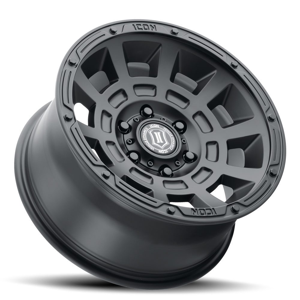 Combining sharp concave lines, a unique lip design with imprinted logos, and “ICON-optimized” dimensions, the ‘Thrust’ wheel is not only designed to improve the looks of your Jeep, truck, or SUV, but the overall function of the vehicle as well. Available in all-new Smoked Satin Black and our classic Satin Black finishes, the Thrust has a style that is anything but ordinary.