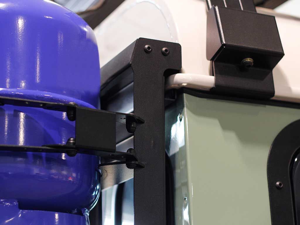 Transport and store you Gas/Propane bottle onto your Land Rover 90 & 110 with this 3CR12 stainless steel, gutter mount Single Gas Bottle Bracket.