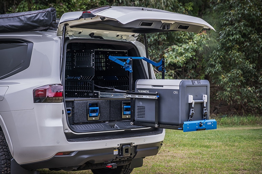 The patented “Stay-Open Block” allows the drawer to remain in an open position even on a 30-degree slope. They also feature an LED Light Strip that activates at full extension and has a manual override switch. A 100% safe and secure lock system that can not be levered open from underneath, is an exceptional security measure. Dust resistant seals around front panels ensure all the items stored inside stay clean and dust free. Flush-fitting wing kits are available for most 4WDs and utes, creating additional storage space between the Storage Drawer System and the inner sides of the car. Access to the space is gained through removing the wing and face panels. The reinforced wing kit brackets provide a fully supported base for fridge slides to be mounted onto the wing panels, allowing for more placement options.