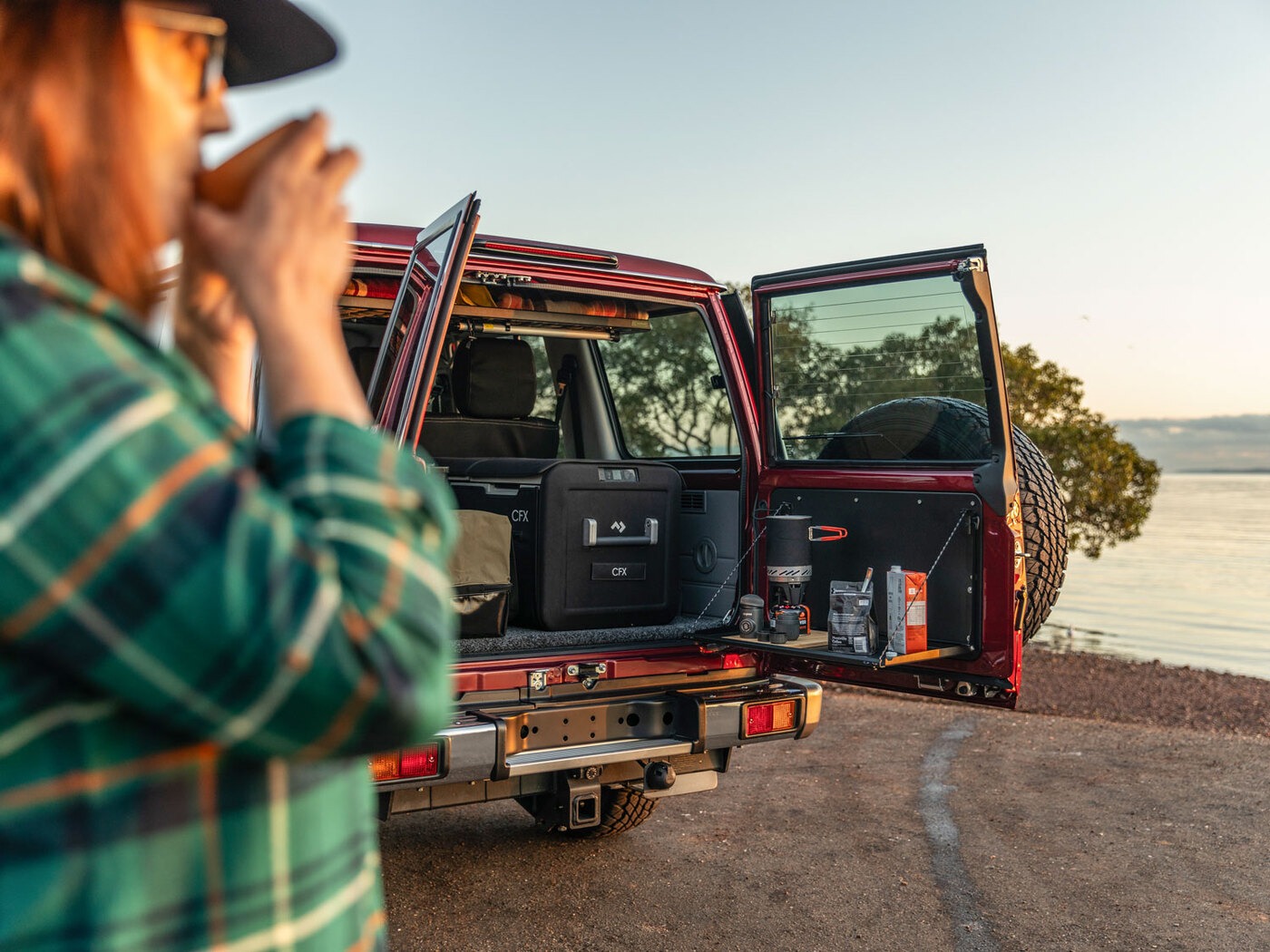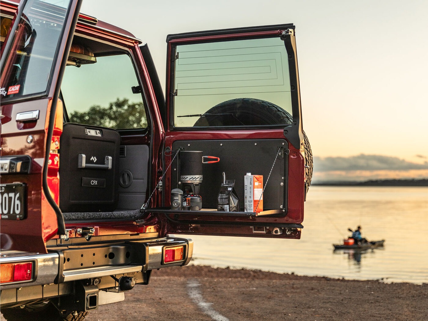The easiest work and prep surface for life on the road – whether it’s a roadside lunch, a little email catch up, or the ultimate drinks bar at the campsite.