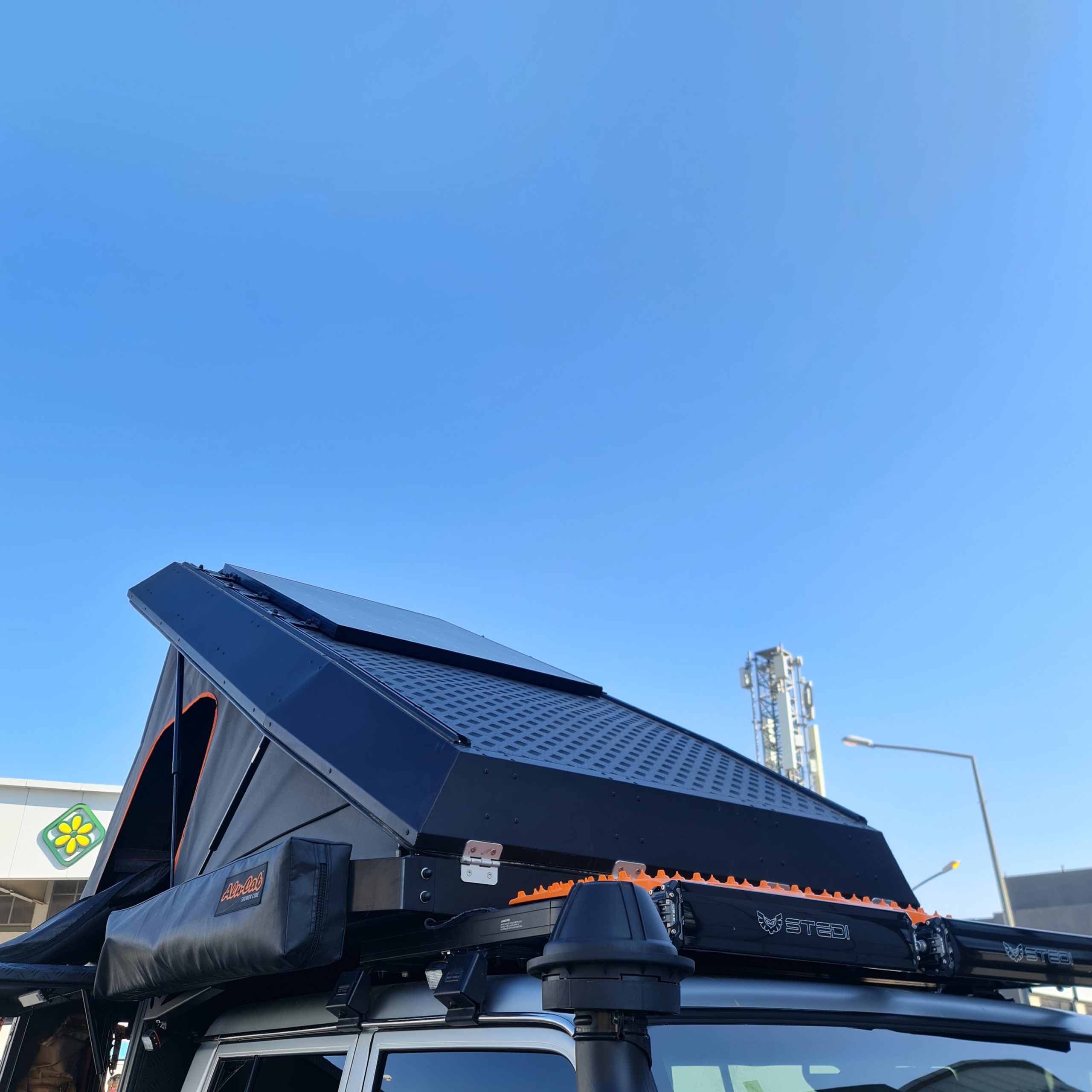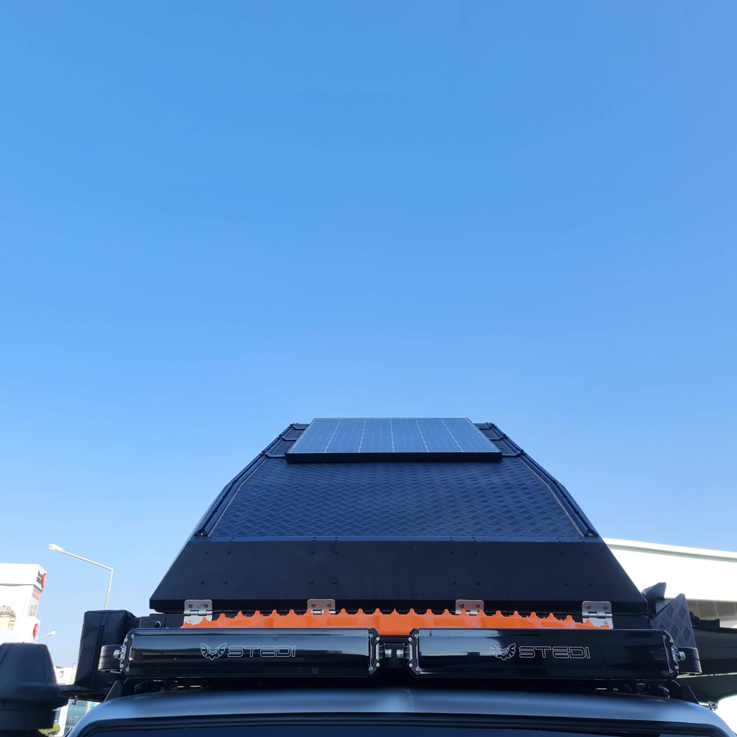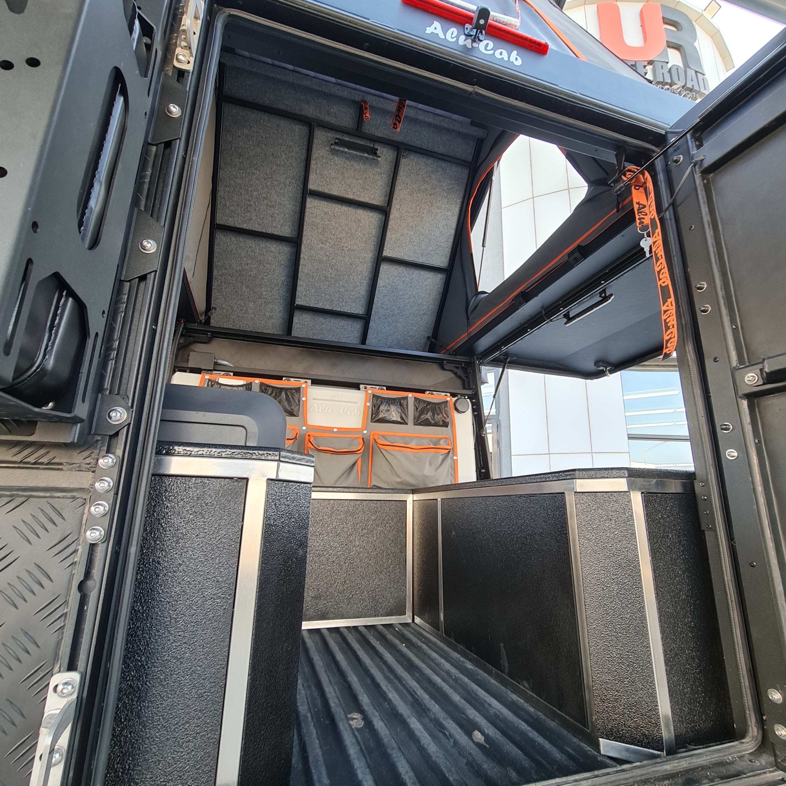An easy-access vertical door with heavy-duty hinges, and the ability to mount a 33″ spare-wheel (No need for an after-market rear bumper and wheel carrier). This also solves the problem of dust entering through the tailgate.