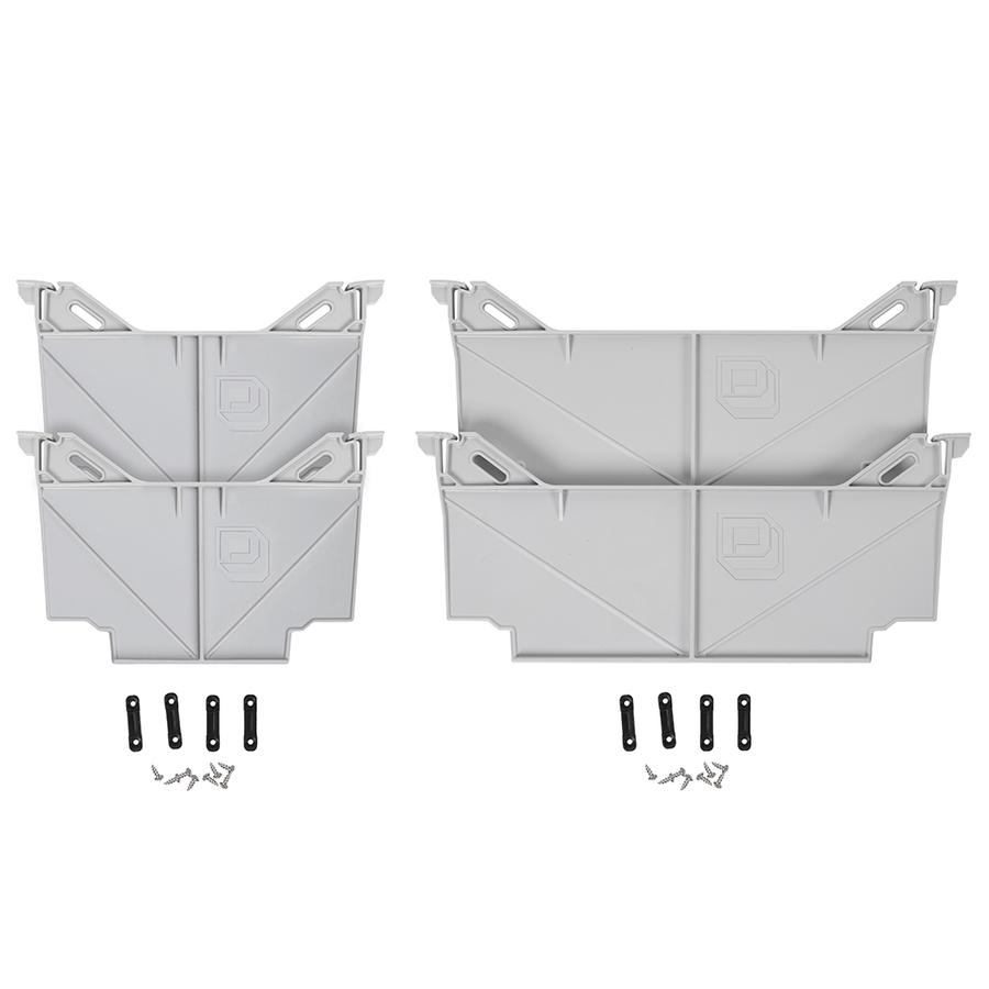 The dividers are 8″ tall and fit into mounting positions within the DECKED drawers, allowing you to customize the drawers for your gear. Each divider has cut-outs that allow you to secure your gear with handy tie-down points. Light gray in color to make finding your stuff easier. Can be taken out or re-positioned with ease. Made from polypropylene.