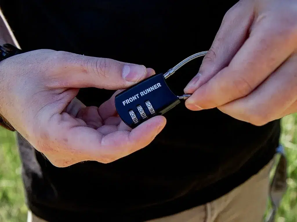 Keep your rack-stored gear secure with this combination lock. Use with Front Runner holders for axes, tables, Hi-Lift Jacks, water, Wolf Packs and more.