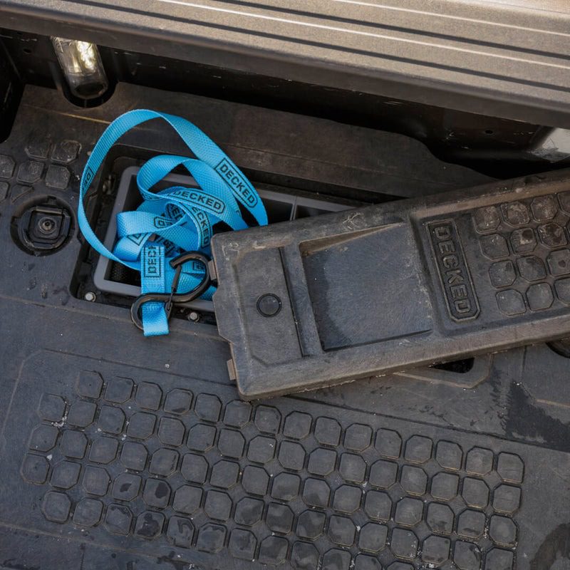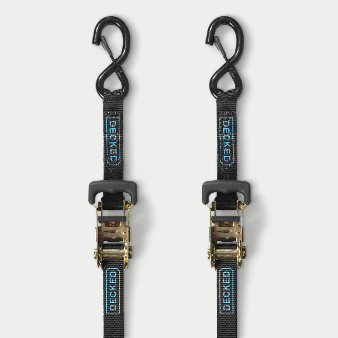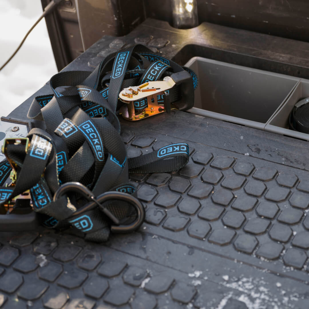 Don’t be a clown, tie it down. The DECKED Ratchet Straps use a ratcheting closure to strap your cargo down tighter than Paul Bunyan’s shoe laces. They’re fully compatible with DECKED Drawer Systems and D-Rings, and rated for 1,000-lb payloads.