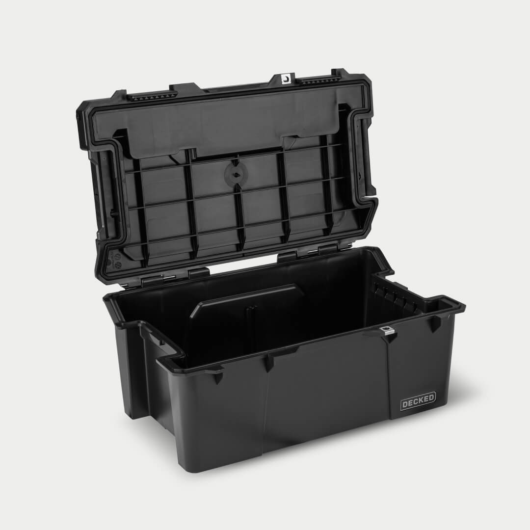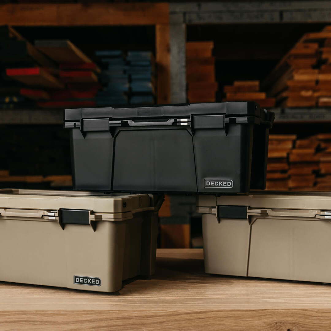 The CrossBox (toolbox) maximizes drawer storage efficiency and organization, nesting within the DECKED drawers and Tool Box.