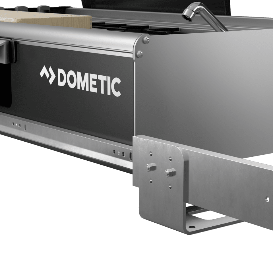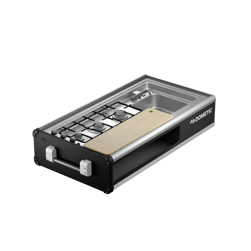 A must have for every adventure, the Dometic Small Slide Out Kitchen functions as a 3-burner cooktop, sink, and benchtop. It also features a generous amount of built-in dual side storage to keep dining and cooking equipment secure.