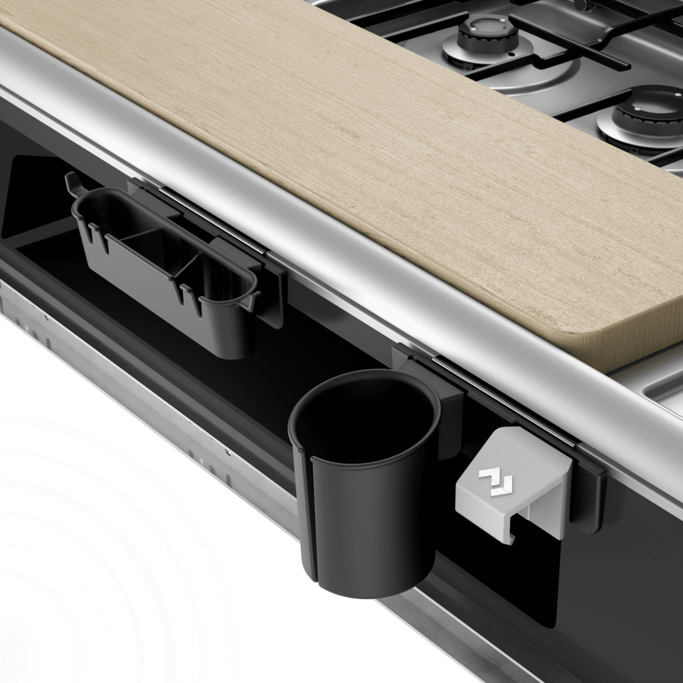 Not only does the Dometic Slide Out Kitchen save valuable space, but its telescopic runners also make it quick and easy to pull-out and stow away after use. It provides all the kitchen essentials: a sink, double-side access storage, three-burner cooktop, and a chopping board. Various additional features can be added such as a bottle opener, cup and utensil holders. The kitchen’s modular aluminium construction makes it lighter, while a generous amount of built-in storage keeps dining and cooking equipment safe and secure. Easy to install on most RVs thanks to its simple three-step installation method, the Small Slide Out Kitchen takes cooking outdoors to new levels of convenience!