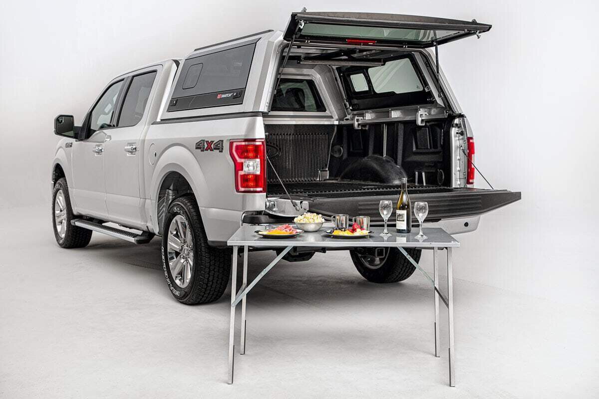 The Smartcap Stow Away Table is an instant pop-up picnic table made of sturdy stainless steel. We’ve included a mounting bracket for storing the table, hidden away on the interior roof of your SmartCap. Smart!