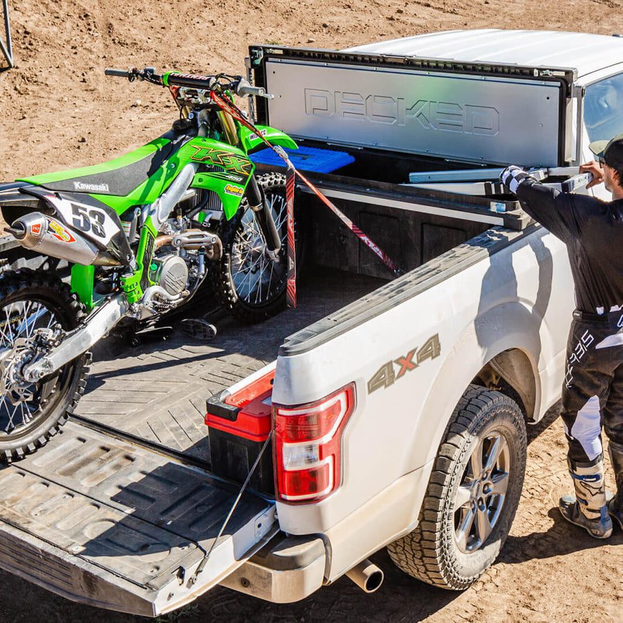 2 Tool Box Tie Downs located at base of the Tool Box Tub for securing large cargo or an ATV/Moto. Fits DECKED Tool Box Only.