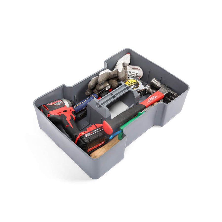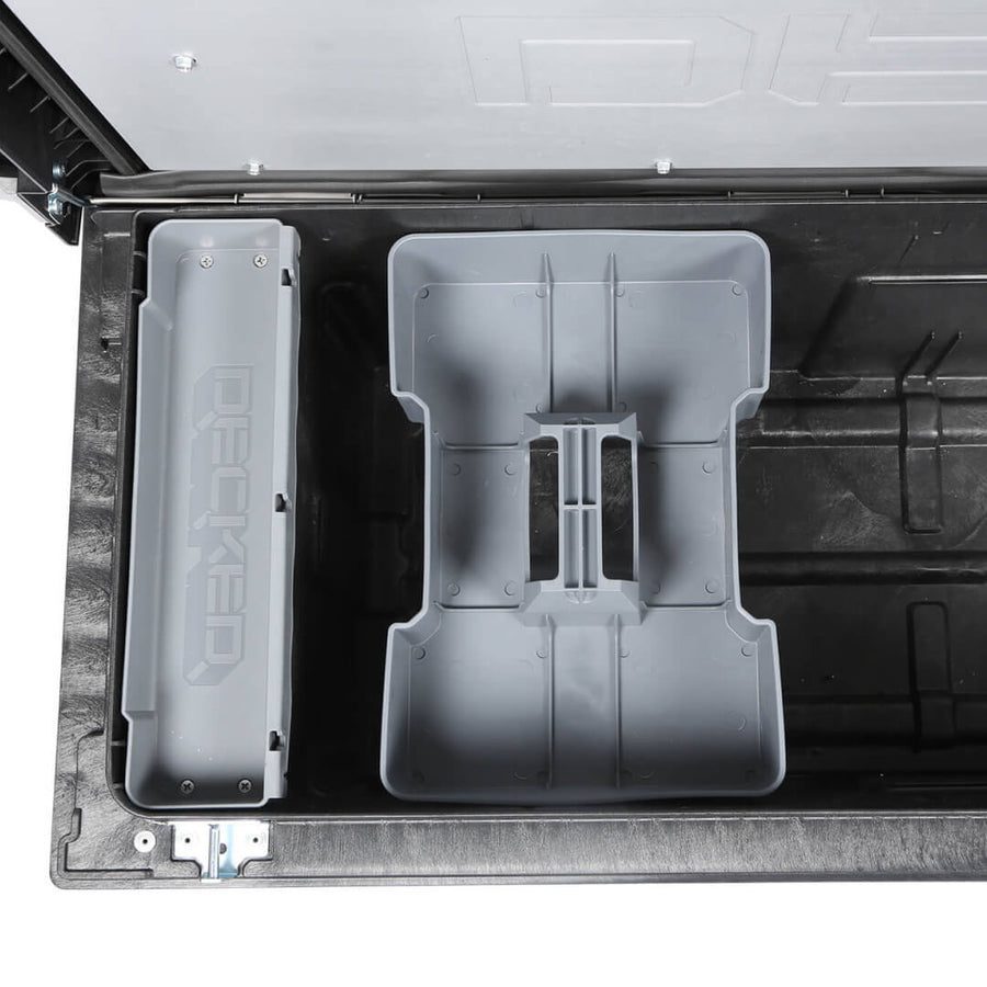 A molded tray that rides on the “rails” molded into the sides of the DECKED Tool Box. Allows for easy access to tools and gear both inside and outside of the Tool Box.Â
