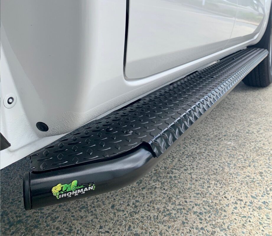 Ironman 4×4 Premium Side Steps are made from 60.3mm diameter high quality steel tube, powder coated for longevity and chassis mounted for strength. Designed to protect your vehicle from damage off road and providing a convenient step into lifted four wheel drives.