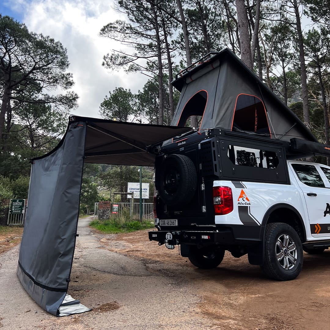 Enjoy all-weather comfort with our Universal Side Panel. It easily attaches to any Alu-Cab awning for wind or sun protection.