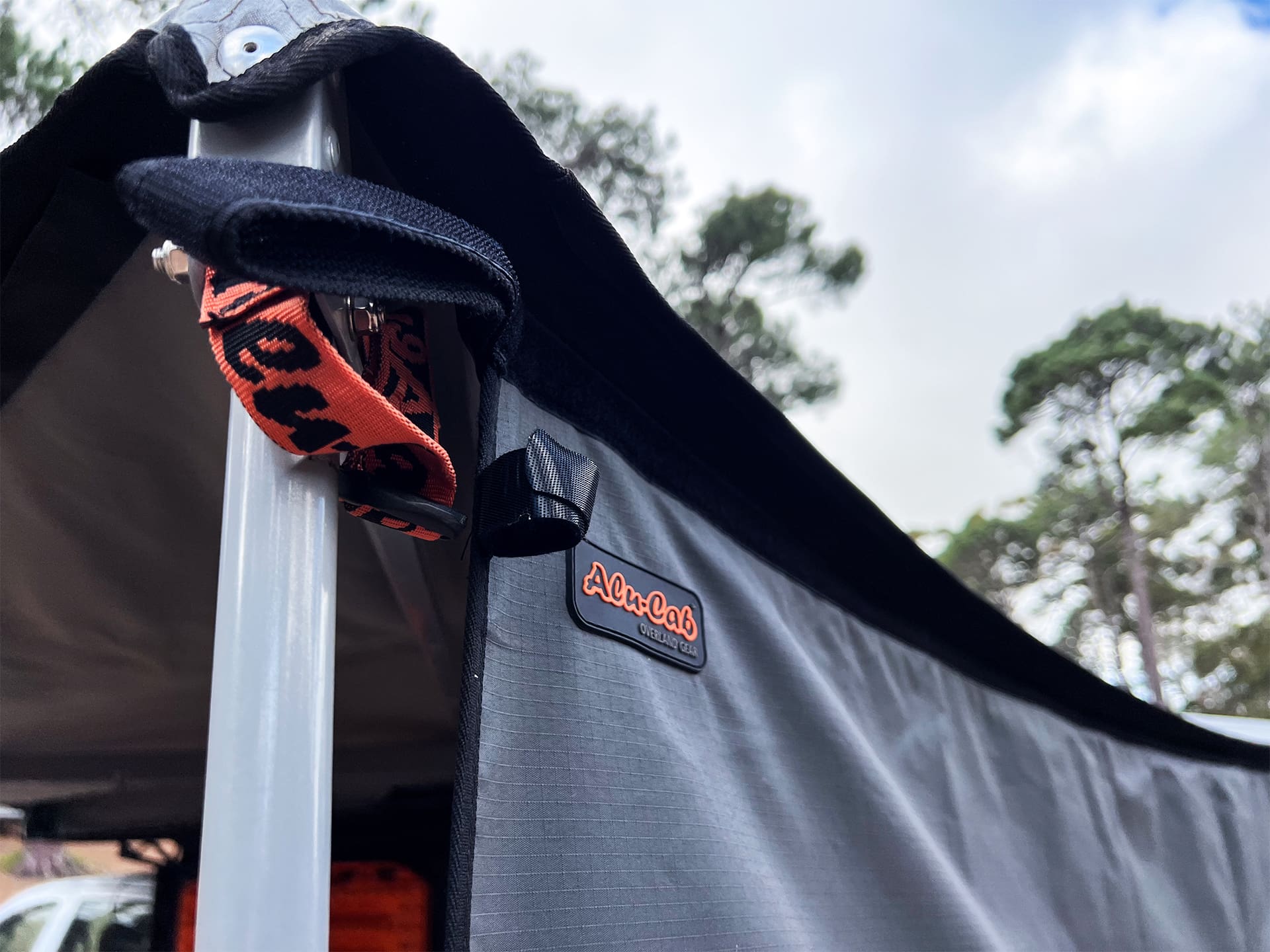 Can be mounted anywhere along the edge of the awnings existing velcro to provide shade/shelter against sun and wind